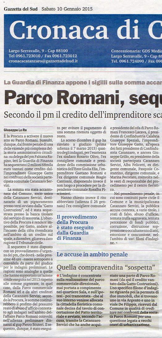 PARCO ROMANI, SEQUESTRATI 2 MILIONI DI EURO